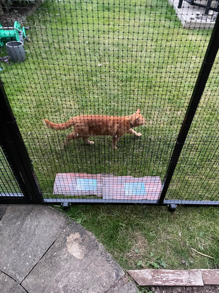 Skirmish 3: By this point, Angus was getting quite tired of me having all of the attention, so it became clear that he too was planning a form of protest against the presence of The Abomination. It has to be said though, that my brother takes rather more direct action. After breakfast, he marched upstairs to hoomama’s bedroom, climbed up onto the window sill of the first floor window, jumped again until he was balancing on the edge of the tiny open window….and then he jumped. I mean, even I was impressed. That’s some kind of direct action and around 25 cat heights, so as protests go, it was pretty dramatic. The last I saw of him, his furry backside was disappearing over the garden fence as he went in search of amusement.