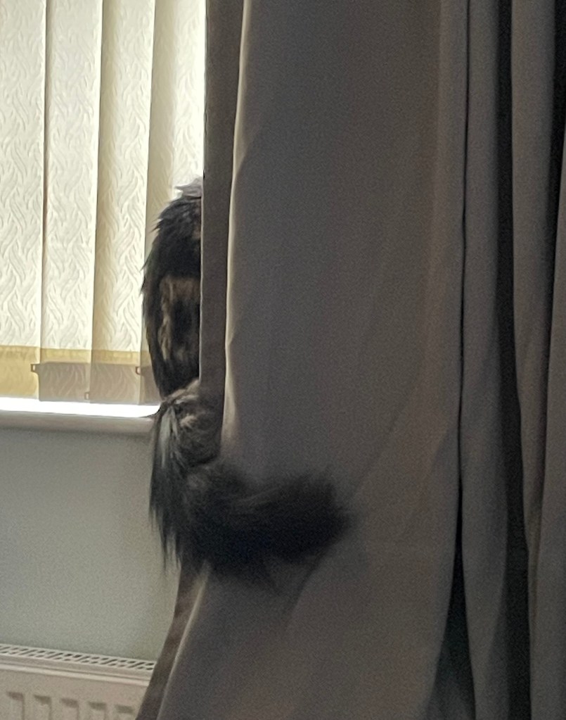 Finally, clearly annoyed at the disruption, my unreliable, unfaithful brother marched over to the offending curtain and pointedly sniffed right in the middle of the spot of my anointing. Hoomama pounced, and would you believe it, she stroked my brother and thanked him for telling her where it was?! He is SUCH a grass. We shall have words later on.